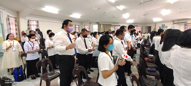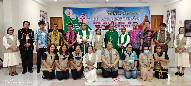 Papar – Kursus Evangelisasi Peribadi (KEP) Angkatan 2 Sabah dengan tema ”Yesuslah Jalan, Kebenaran dan Kehidupan” (Yoh 14:6) telah dilaksanakan selama 4 bulan secara ONLINE dan diakhiri dengan Retret Pengutusan pada 10 hingga 12 Jun 2022 melalui tema “Yesus Pewarta Injil”. Dengan kata-kata semangat yiel yang tepat sekali, mereka melaungkan “KEP Sabah! Yes! Yes! Yes! Saksi Kristus, Siap Diutus!, sekaligus menyaksikan seramai 141 orang peserta yang datang dari Keuskupan Agung Kota Kinabalu, Keuskupan Keningau, Keuskupan Sandakan dan Keuskupan Agung Kuala Lumpur diutus pada Misa penutup Retret Pengutusan KEP Sabah Angkatan 2 di Pusat Retret FSIC Pace Bene Purak, Papar Sabah. Misa Pembukaan Retret telah disempurnakan oleh Yang Mulia Uskup Agung John Wong dan dibantu oleh Rev. Fr. Nicholas Stephen serta Fr. Yohanes Suradi. Uskup Agung John Wong dalam homilinya mengingatkan para peserta bahawa Yesuslah yang telah memanggil mereka untuk datang ke retret tersebut untuk mendengarkan SabdaNya melalui renungan dan sesi-sesi ceramah yang bakal disampaikan. Justeru, sebagai anak-anak Tuhan maka hubungan peribadi dengan Yesus perlulah dimantapkan agar dapat menjadi pewarta Khabar Gembira Kristus kepada orang lain melalui kesaksian hidup kita sendiri. Uskup Agung John juga mengingatkan para peserta agar peka kepada Sabda Tuhan dan berkata “Alkitab adalah Sabda Tuhan tetapi tidak semua Sabda Tuhan itu terdapat dalam Alkitab sebab Sabda Tuhan itu juga hadir melalui peristiwa hidup kita, persekitaran dan orang lain”.